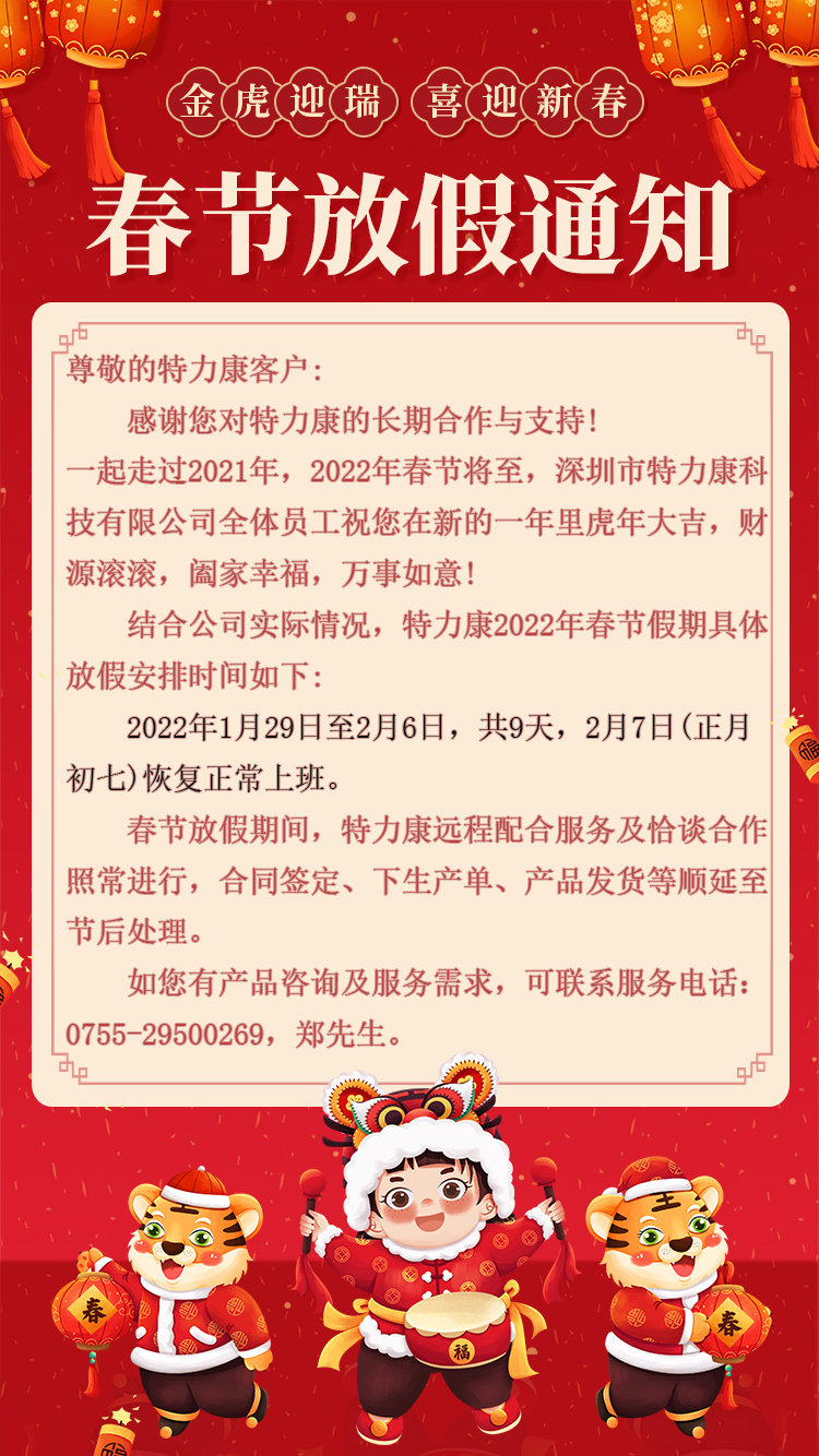 2022年春節(jié)即將來臨,根據(jù)國家相關(guān)規(guī)定,結(jié)合本公司實(shí)際情況,經(jīng)公司領(lǐng)導(dǎo)決定2022年春節(jié)假日具體放假安排時間如下: