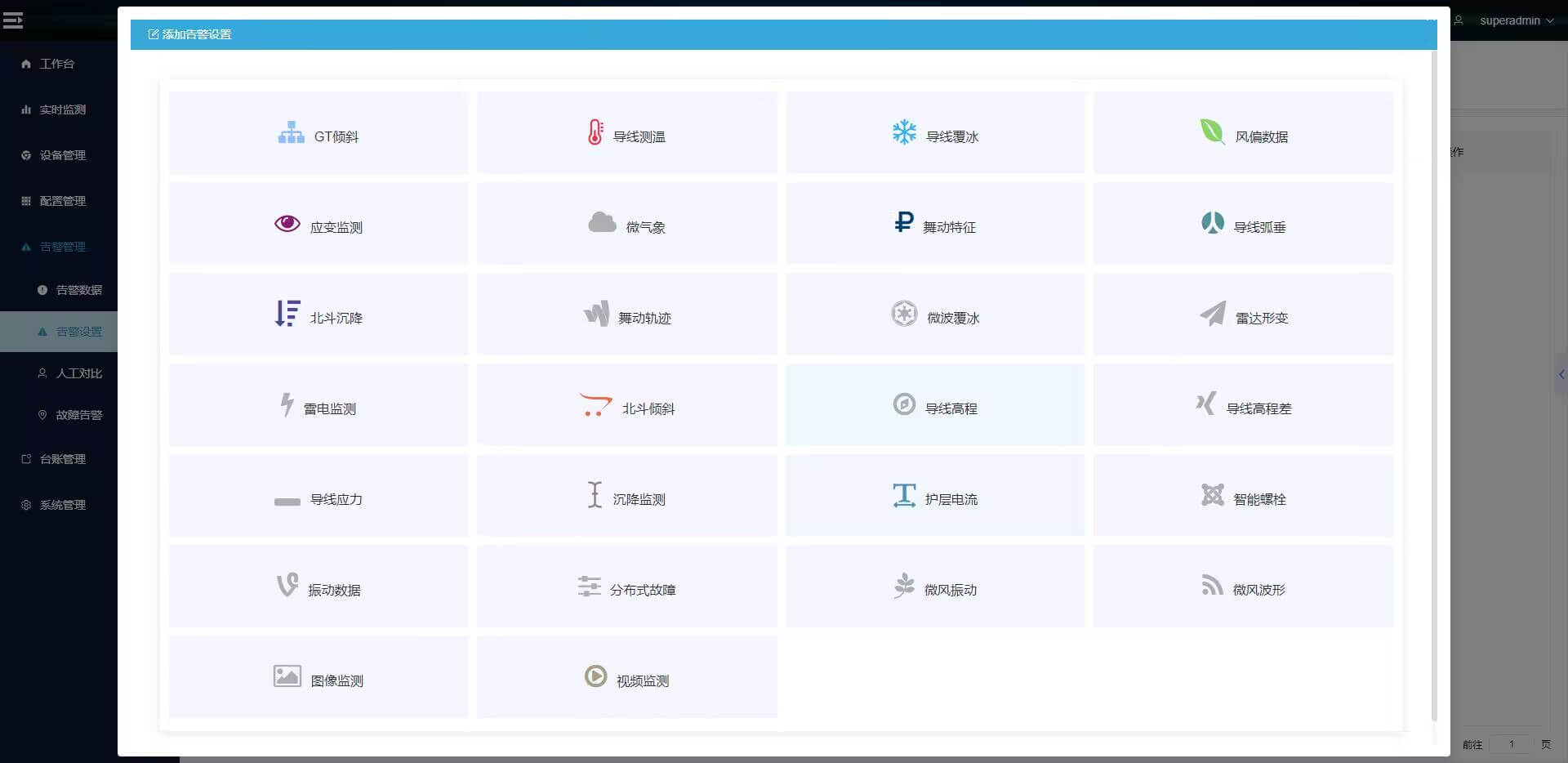 安全電網監(jiān)測系統(tǒng)軟件平臺TLKS-PMS主要由監(jiān)控平臺、設備通訊處理服務及各類子監(jiān)控巡視系統(tǒng)組成。整個系統(tǒng)以監(jiān)控平臺為核心,完成對各類子系統(tǒng)的整合,集中實現(xiàn)監(jiān)控數(shù)據(jù)處理、實時巡視、數(shù)據(jù)分析、數(shù)據(jù)推送等功能,并完成與其他系統(tǒng)的鏈接通信。實現(xiàn)對輸電線路現(xiàn)場視頻、施工環(huán)境、覆冰、氣象、振動、形變監(jiān)測等各種重要信息的集中收集、處理、巡視、預警等功能。