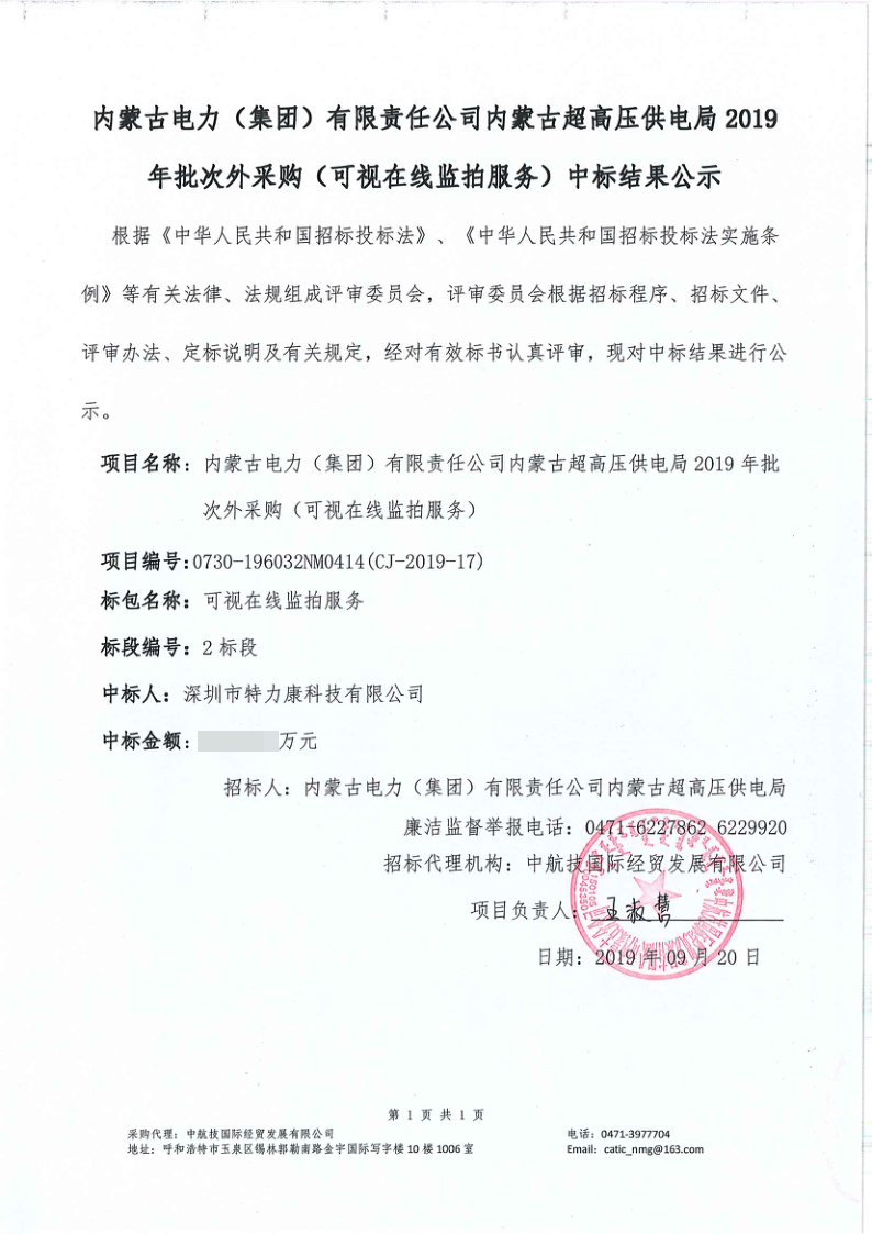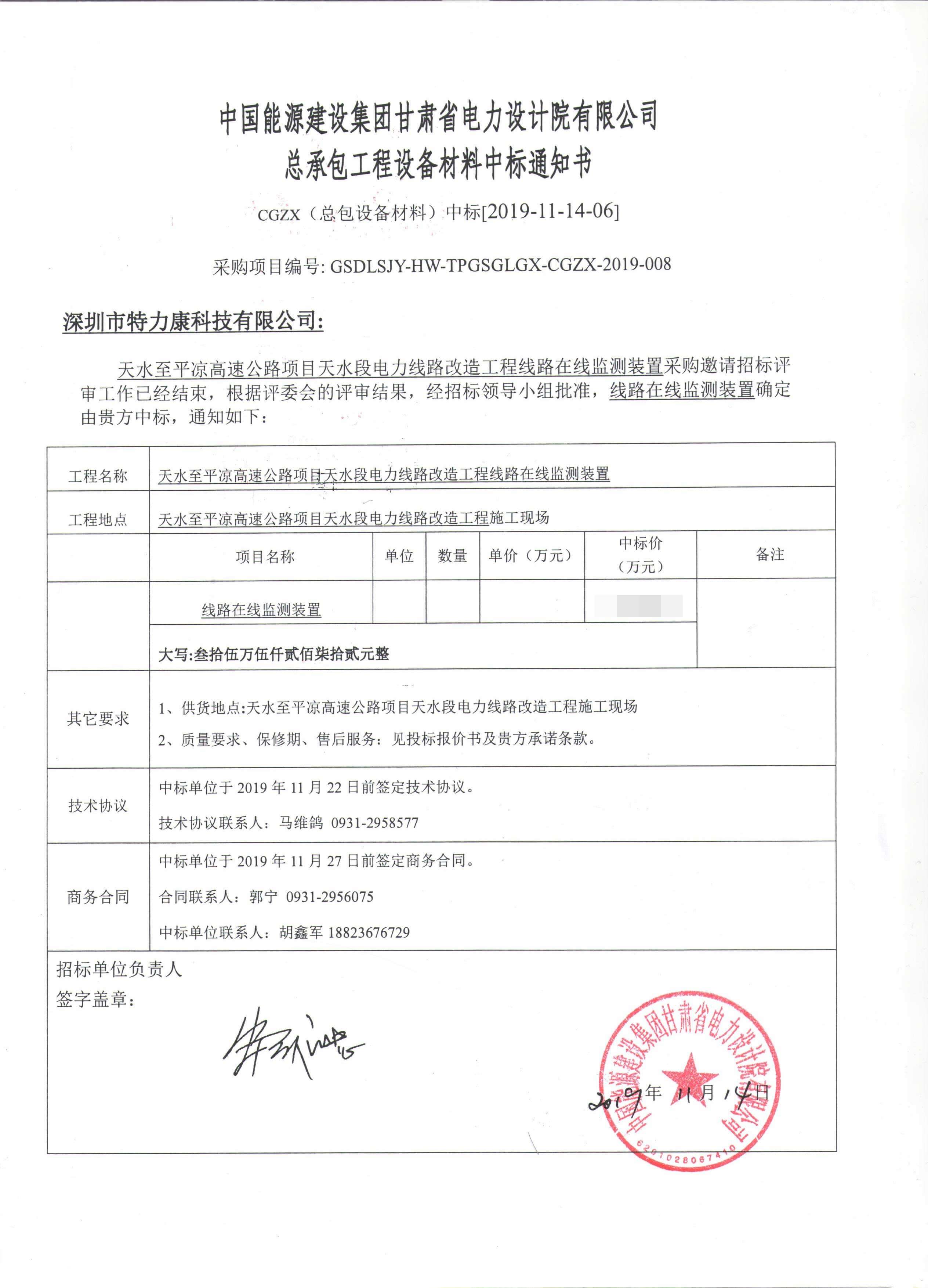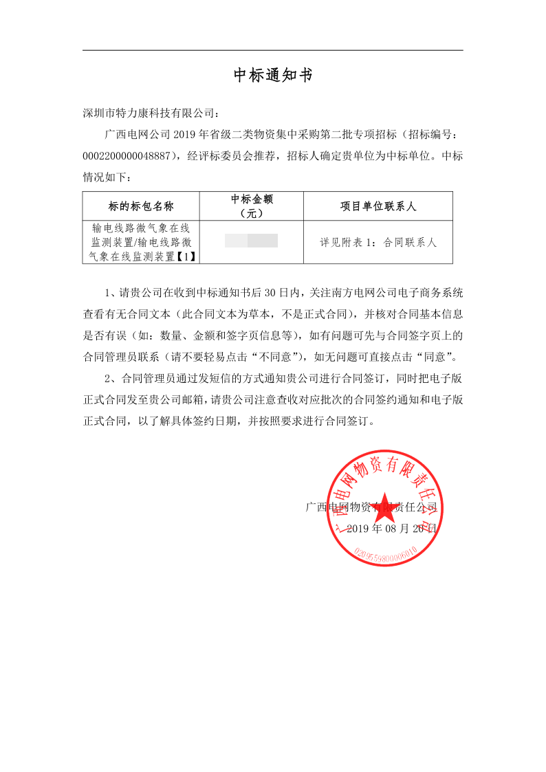 特力康中標(biāo)國(guó)網(wǎng)黑龍江送變電工程公司的2024年度第18次物資類(lèi)競(jìng)爭(zhēng)性談判采購(gòu)項(xiàng)目——慶陽(yáng)驅(qū)鳥(niǎo)器物資框 特力康中標(biāo)國(guó)網(wǎng)甘肅省電力公司省管產(chǎn)業(yè)單位2024年第五次物資競(jìng)爭(zhēng)性談判授權(quán)采購(gòu)項(xiàng)目 中標(biāo)喜訊:深圳市特力康科技有限公司成功入圍許繼集團(tuán)綜合能源公司輸電線(xiàn)路視頻在線(xiàn)監(jiān)測(cè)裝置模塊集采項(xiàng)目 中標(biāo)喜訊:特力康成功中標(biāo)國(guó)網(wǎng)重慶市電力公司渝中一片區(qū)項(xiàng)目 特力康成功中標(biāo)國(guó)網(wǎng)天津市電力公司2024年第二次?物?資招標(biāo)項(xiàng)目 特力康中標(biāo)國(guó)網(wǎng)安徽省電力有限公司蕪湖供電公司2024年3月非物質(zhì)采購(gòu)項(xiàng)目 浙江電力裝上“氣象哨兵”:特力康裝置守護(hù)電網(wǎng)應(yīng)對(duì)臺(tái)風(fēng)暴雨 蜀道巡線(xiàn)不用“爬”:特力康視頻在線(xiàn)監(jiān)測(cè)裝置守護(hù)四川輸電鐵塔 風(fēng)雪中的 “防冰哨兵”:內(nèi)蒙古電力用特力康監(jiān)測(cè)系統(tǒng)筑牢覆冰防線(xiàn) 雙軸感知護(hù)塔穩(wěn):山西電力用特力康裝置破解采空區(qū)傾斜難題 江西電力裝上 “智能防鳥(niǎo)衛(wèi)士”—— 特力康綜合激光驅(qū)鳥(niǎo)器破解湖區(qū)變電站鳥(niǎo)害難題 破解巡檢難題:貴州電力用特力康 AI 微拍裝置,精準(zhǔn)捕捉線(xiàn)路隱性隱患 精準(zhǔn)捕捉 “微氣象”:浙江電力用特力康預(yù)警系統(tǒng)筑牢電網(wǎng)氣候防線(xiàn) 守護(hù) “電力咽喉”:湖南電力投用百套特力康三跨 4G 監(jiān)控球,筑牢安全防線(xiàn) 貴州電力裝特力康電網(wǎng)架空線(xiàn)路覆冰監(jiān)測(cè)系統(tǒng),精準(zhǔn)防冰保電網(wǎng)過(guò)冬? 寧夏配電線(xiàn)路安裝了我司防外破電子化智能警示牌